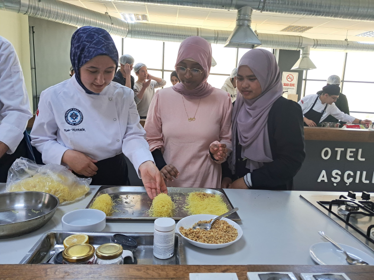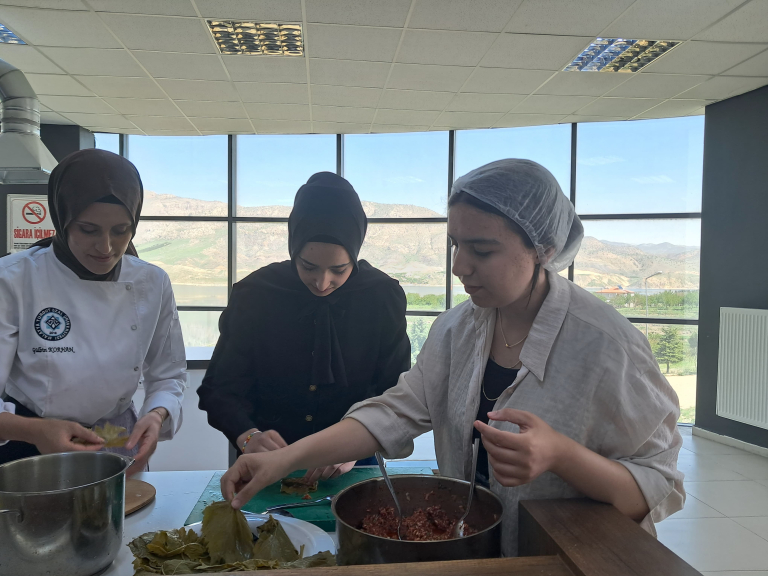 Together with our international students, Turkish Teaching Application and Research Center (TÖMER), we organized a Turkish cuisine event at Kale Vocational High School Culinary Program! Manti, tas kebab, cherry leaf wrap, pumpkin dessert, palace wrap, stuffed kadayif with rose sherbet and more... Cultures met, flavors talked!